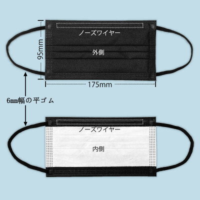 黒マスク 個包装 200枚入 (50枚箱入×4箱) 大きめ 平ゴム 使い捨てマスク 大人用 男性用 女性用 マスクゴム プリーツ 不織布マスク 飛沫防止 花粉対策 防護マスク 耳痛くならない black ブラックマスク
