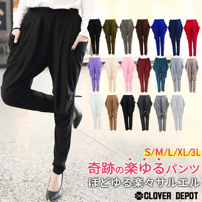 【26h限全品P5倍! 最大500円クーポン有】即納 S〜3L サルエルパンツ 大人 サルエル 楽チン レディース ロング丈 10分丈 七分丈 パンツ きれいめ かわいい ウエストゴム クロップドパンツ テーパードパンツ ストレッチ リラックス ダンス 無地 ヨガ 大きいサイズ 送料無料