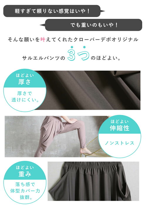 驚きの体型カバー力!美脚効果!クローバーデポのサルエルパンツ ヘビーリピーター続出!お客様に愛され改良を加えながら成長してきたクローバーデポのサルエルパンツ。