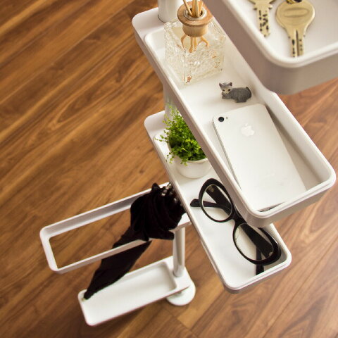 玄関において傘立てやスリッパラックとして使い、出かける時に必要な鍵などの小物をまとめておくと便利です。
