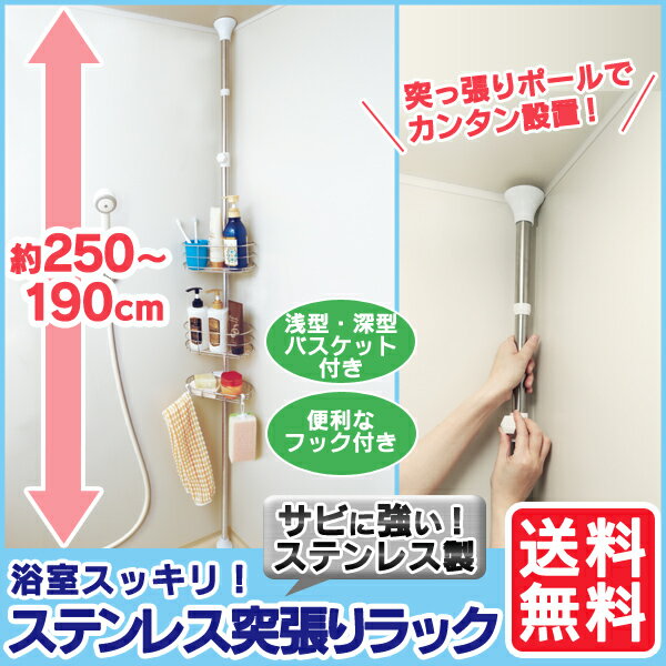 ▼浴室突っ張りラックシリーズ▼ ・ステンレスバスケット(約190〜140cm) ・ステンレスバスケット(約250〜190cm) ・ホワイトバスケット(約190〜140cm) ・ホワイトバスケット(約250〜190cm) 浴室収納の不満を解消するバス用品をスッキリ収納できる突っ張りラックです♪