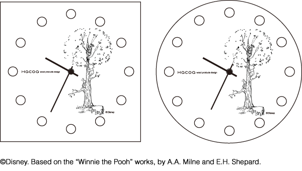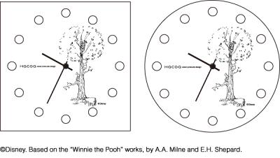 ディズニーキャラクターと一緒、時と共に風合いを増す壁掛け・置き時計 愛らしいディズニーキャラクター、くまのプーさんがレーザー刻印された「Wallclock round・square DisneyCharacters」。